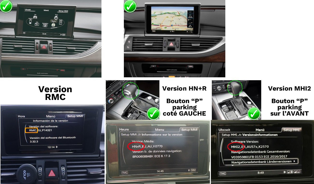 Important : Veuillez préciser la version RMC, MHI2 ou HN+R équipée de votre Audi A6/A7.